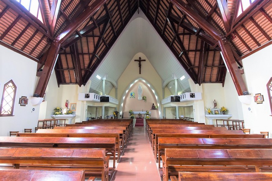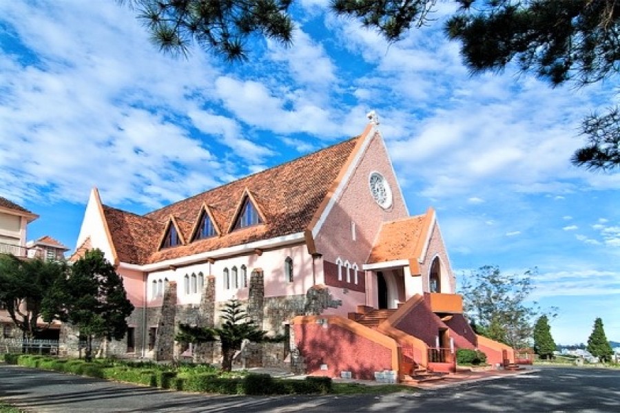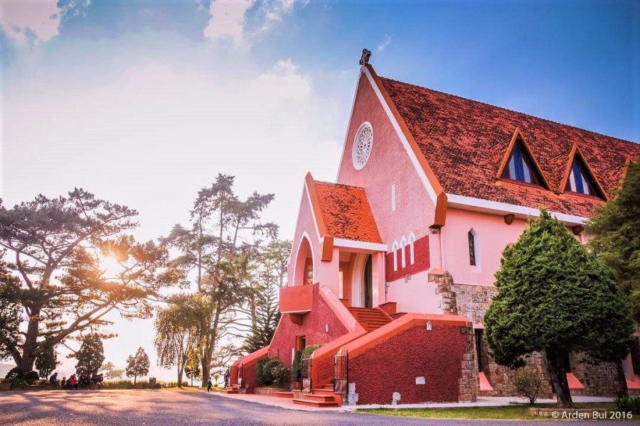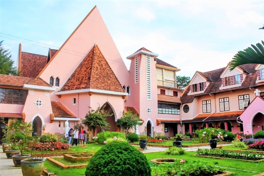 Domaine de Marie Church, also known as the Dalat Vincent DePaul Church, is a famous church in Dalat. the church architecture is quite unique. The backyard is a beautiful and peaceful garden.