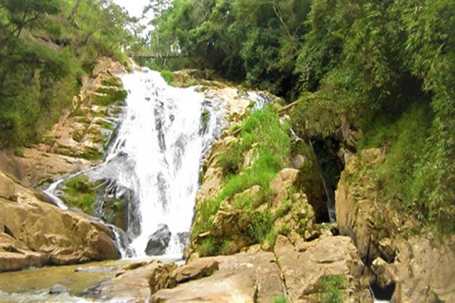 Dalat Tiger waterfall is a famous waterfall in the 90s, located in Xuan Tho commune, 15km east of Da Lat city center. The waterfall is about 50m high and stretches along the stream about 100m.